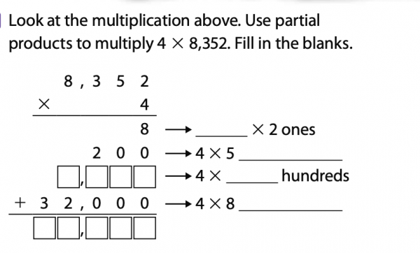 | Partial Products | Area Model | Word Problems | Find the Error | Different Ways to Multiply One Problem |
