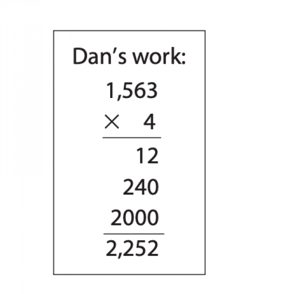 Dan for got to multiply 4 x 1000; so he needs to add four thousand to his product.